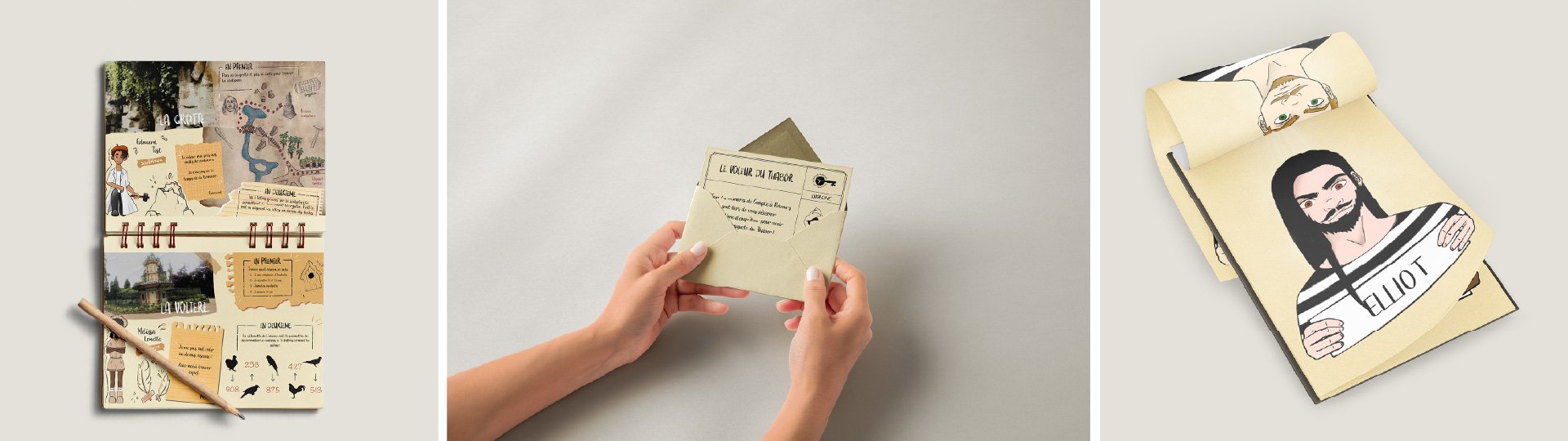 Création de documents de jeu, livrets, énigmes imprimables et supports immersifs, intégrés à vos scénarios pour enrichir l’expérience.