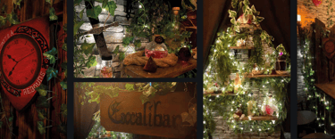 Pour cette salle inspirée d’un univers féerique, j’ai participé à l’ensemble de la scénographie : refonte complète de la partie décorative, création de l’ambiance immersive et cohérence avec le récit du lieu.