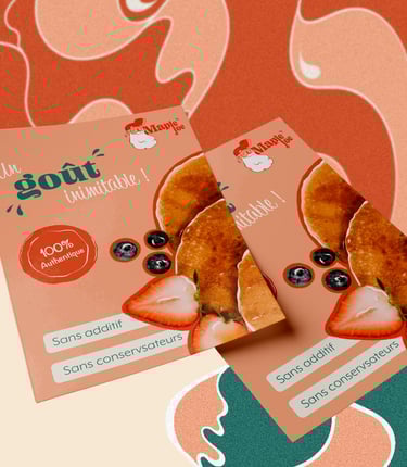 Les étiquettes reprennent la charte graphique avec des couleurs différentes selon la gamme de produits.