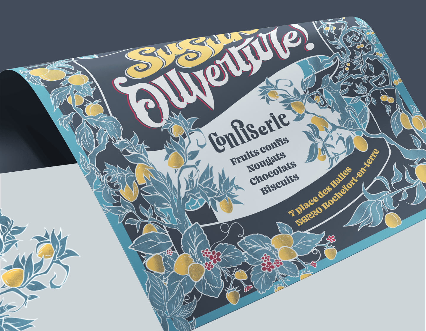 Le client souhaitait une identité forte et originale, qui soit différente de ce qu’on peut appercevoir concernant les confiseries.